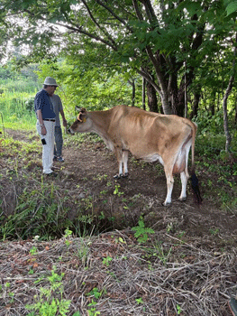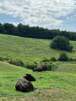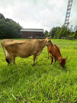 | 【小岩井牧場(酪農)】 この牧場では、かつて耕作放棄地となっていた土地を借りて、牛たちのための草地として再生する取り組みが進んでいます。 小岩井さんは神事を扱う馬、肉牛、鶏などを飼育しながら自給自足に近い暮らしをしています。 ここでは「母子を引き離さず離乳までずっと一緒に過ごす酪農スタイル」。お母さんが子どもに寄り添い、子どもがお母さんに甘える。そんな穏やかな日常が、自然豊かな風景にすっかり溶け込んでいました。このスタイルは日本ではまだ珍しいものですが、欧米ではアニマルウェルフェアの観点から注目されています。 今回の助成事業では、牛が健康に育つための栄養価の高い草地の改良や母子共にストレスが少なく離乳できるよう整備も少しずつ進めているところです。一方で、自然放牧にはアブやブヨ、サシバエなどの虫害といった課題もあります。 夏の間、牛の体に虫が寄りつくことも多くあり、それは「自然の一部」ではあるものの牛にとってのストレスでもあります。 私たちスタッフも現場に出向かなければ気づかなかった自然の厳しさです。この問題には虫が少ない場所への放牧地への誘導などで小岩井さんも対策に取り組まれていました。 来年の春以降、新たにお母さん牛が命を授かり、いずれ親子で健やかに過ごす姿が見られることを期待しています。 NDN訪問記ブログ:https://ameblo.jp/ndn-joutokai/entry-12926716302.html |