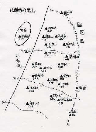 | 「北越後」という地名は一般的には通用している言葉ではありません。 新潟県の北部、つまり県北のことを私が「北越後」と呼んでいるのです。 北越後の東側は、飯豊連峰や朝日連峰の2000メートル級の山岳に囲まれて、それ自体が山形県との県境になっています。その西側の日本海までには、低い山々が数多くあり、その連峰の前衛の山々を形づくっています。 この山々のなかには、私がまだ独りもののガキの頃にがむしゃらに登った山もあります。 たとえば、北アルプスなどへなかなか入る余裕もない時代、やけくそになってアルピニズム論をふりまわして真冬に入った山々です。あるいはもう体があまりきかなくなってから散歩がてらに歩いた山々などもあります。 その山々は、おおげさに云えば、私の心のふるさとの山、というべきもので、新しい世紀、21世紀にもぜったい伝えていきたい山々です。 これらの山々が、いつまでも残ることによって、北越後の価値が光ってくるものだろうと思います。 その山のいくつかには登山道がとりつけられて「里山」(さとやま)として、登山者に親しまれています。このシリーズでは、私が登ったことのある山々を次回から紹介させていただきます。 |